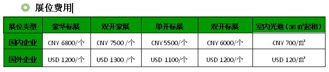 注:A. 标准展位:三面展板(高2.5米),中文楣板、咨询桌一张、折椅两把、射灯两支及5A/220V插座。