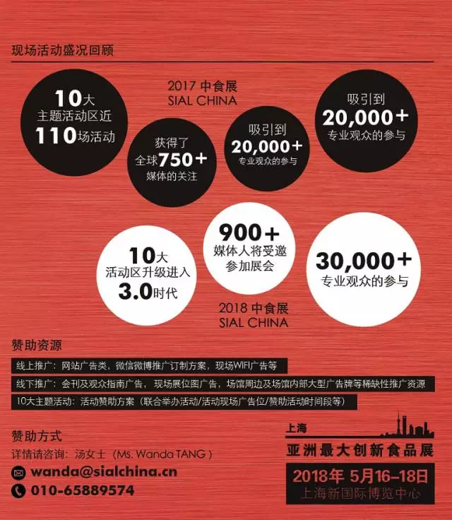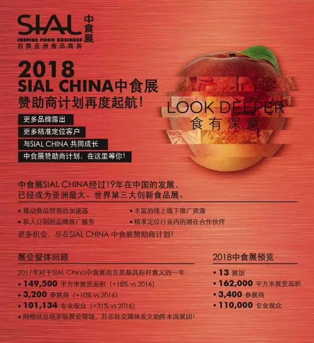 经过19年在中国的发展,SIAL China中食展已经成为亚洲最大的创新食品展,2018年中食展的赞助商计划再度起