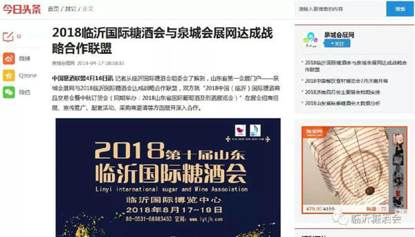 祝贺2018山东临沂国际糖酒会与泉城会展网达成战略合作联盟