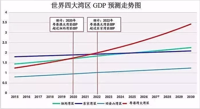 环顾全球,不论经济总量还是人口数量,粤港澳都堪称"富可敌囯"。以此发展趋勢计算,中国湾区经济——粤港澳大湾区将为推行湾区经济带来新契机,仅需5年就可成为世界湾区,跻身世界前列。