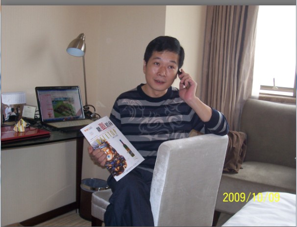 这次是在郑州的粤海大酒店的房间里,我们给杨总亲自送杂志过去