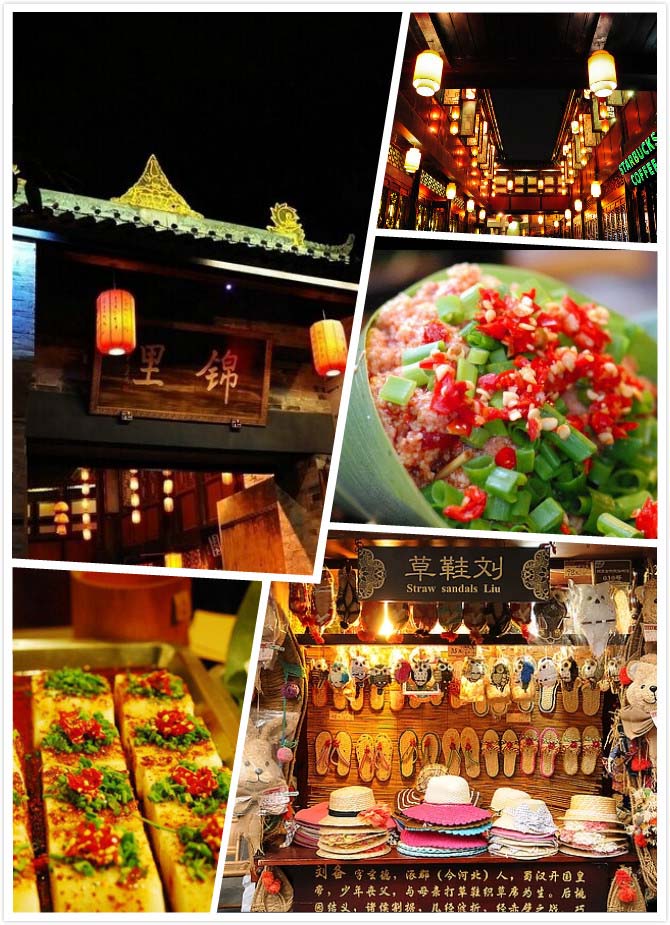 锦里依托成都武侯祠,以秦汉、三国精神为灵魂,明、清风貌作外表,川西民风、民俗作内容,扩大了三国文化的外延。在这条街上,浓缩了成都生活的精华:有茶楼、客栈、酒楼、酒吧、戏台、风味小吃、工艺品、土特产,充分展现了三国文化和四川民风民俗的独特魅力。