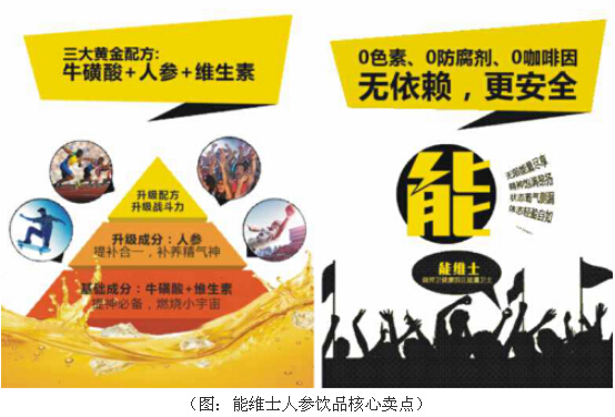 能维士人参产业有限公司市场部总监吴竹筠女士告诉笔者:“能维士最大的卖点在于——健康提神,能维士人参饮品专门针对当下消费者的提神新需求研发,绝不含防腐剂、色素和咖啡因。“