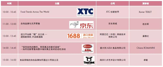 全球最大的移动市场公司:阿里巴巴,中国最大的自营式电商企业:京东,全球最大信托机构:硕富麟,XTC,GIRA,欧睿国际及海洋管理委员会等机构的顾问和专家等发表了深刻而独到的演讲,话题紧扣当前食品饮料行业热点,如自有品牌、互联网时代转型、进出口政策、食品创新、市场趋势等。